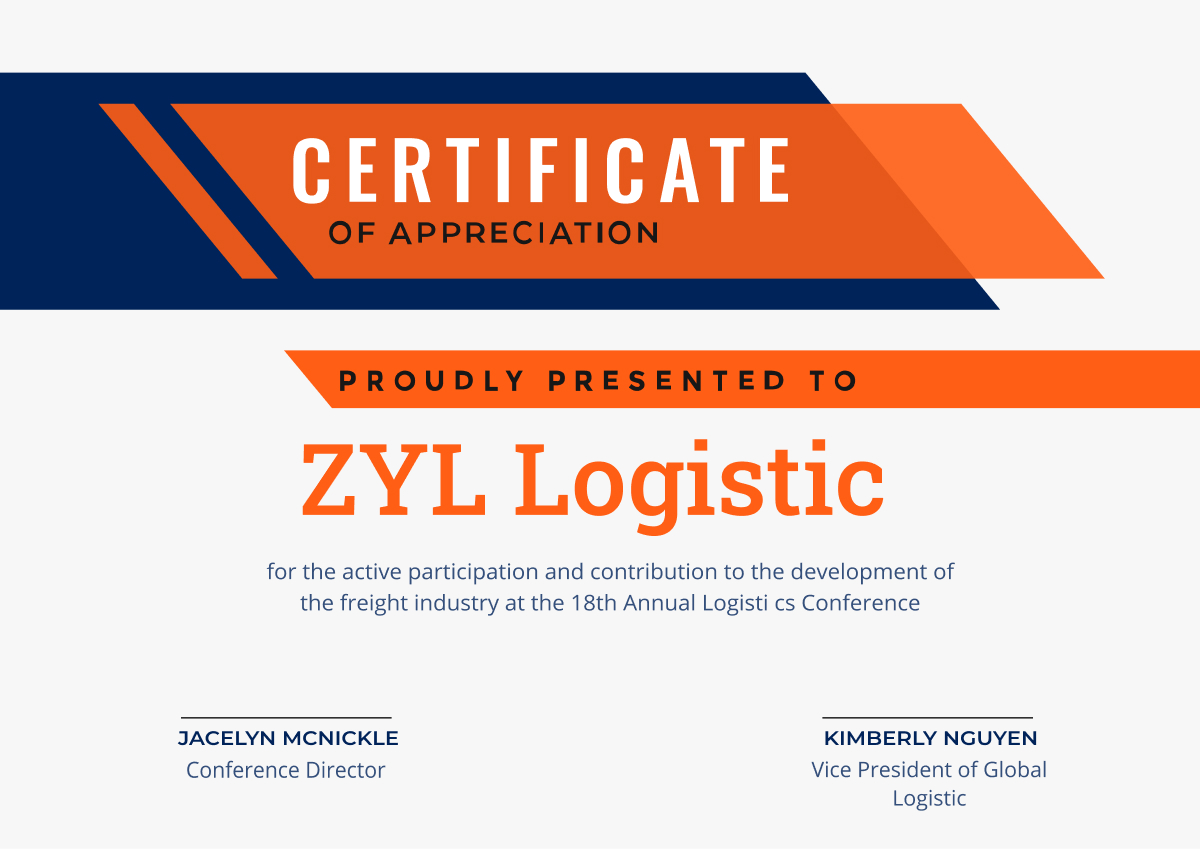 Appreciation for Logistic Services